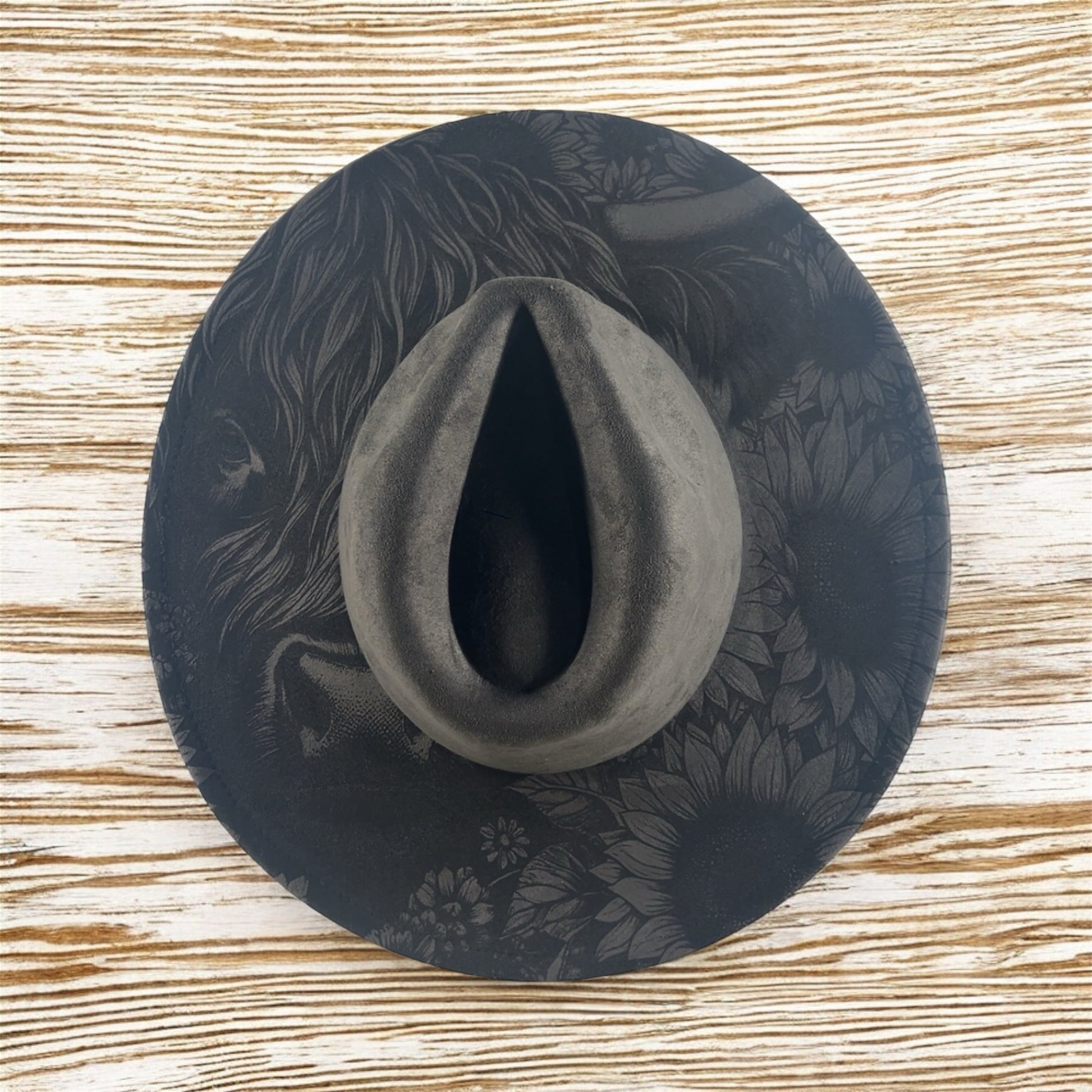 The engraved design adds a unique, one-of-a-kind touch — no two hats are exactly the same as they are engraved made to order.