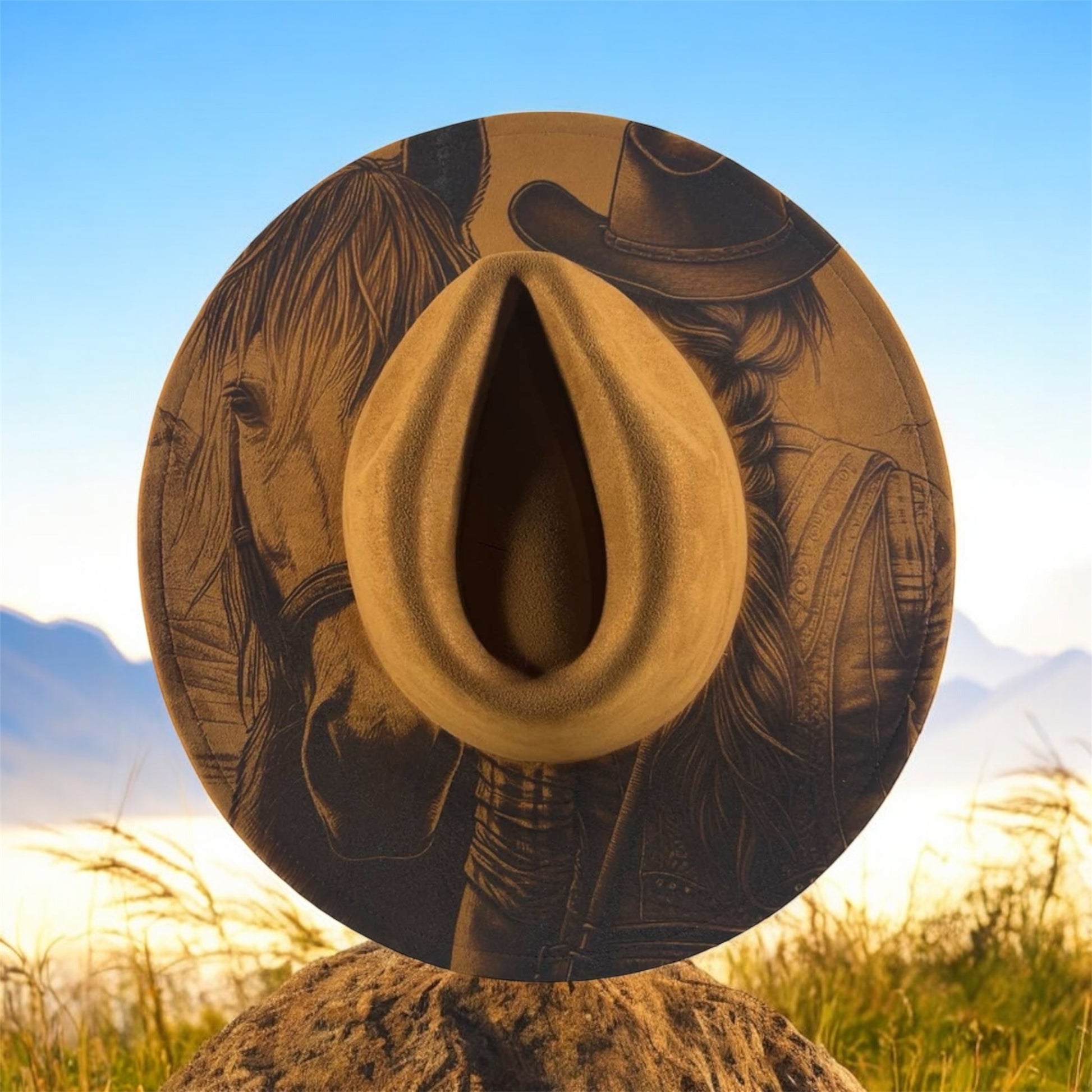 The engraved design adds a unique, one-of-a-kind touch — no two hats are exactly the same as they are engraved made to order.
