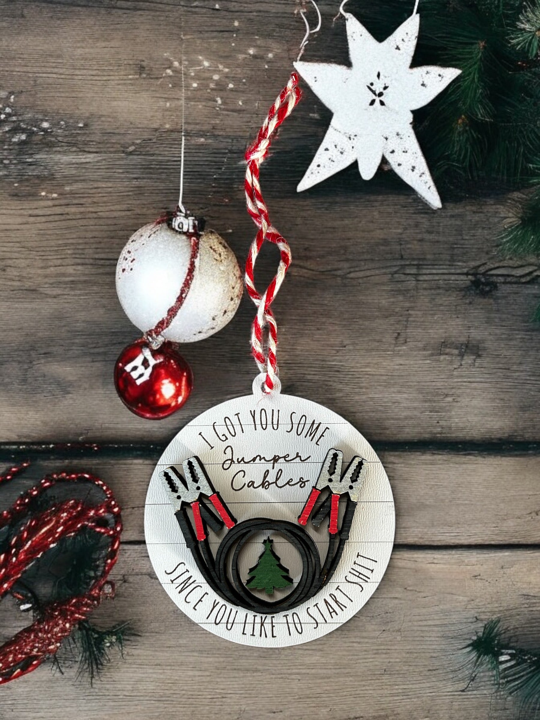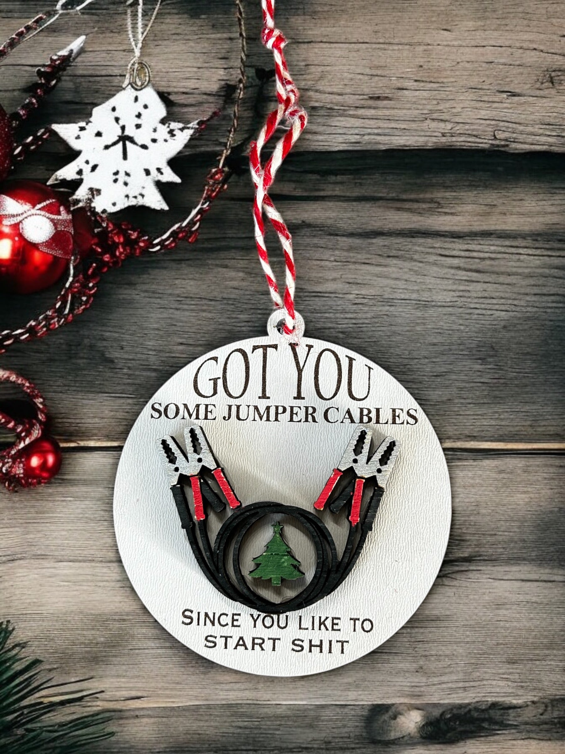 Funny jumper cable ornament