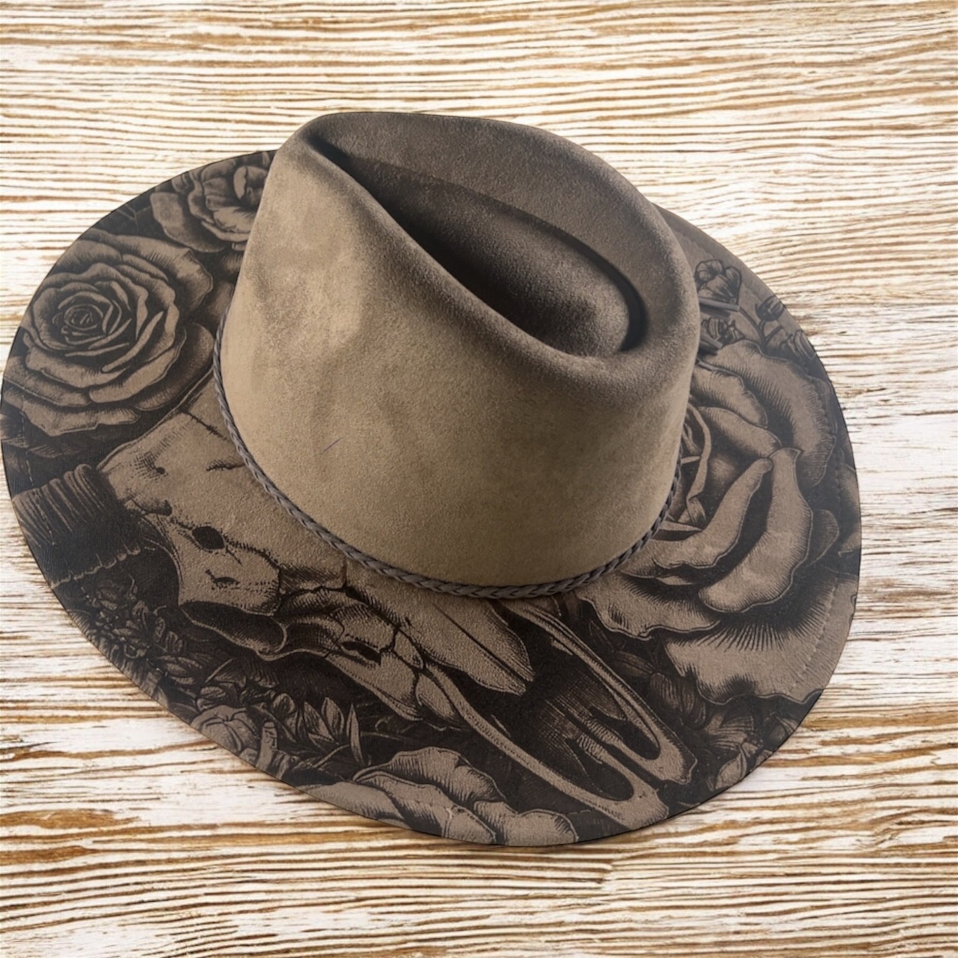 The engraved design adds a unique, one-of-a-kind touch — no two hats are exactly the same as they are engraved made to order.